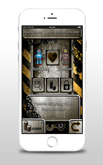 In the game the player has the option to buy, mix - breed or build completely new own robots, each robot begins the process of it’s life as a small Bot. Bots evolve as far as the care and modernization